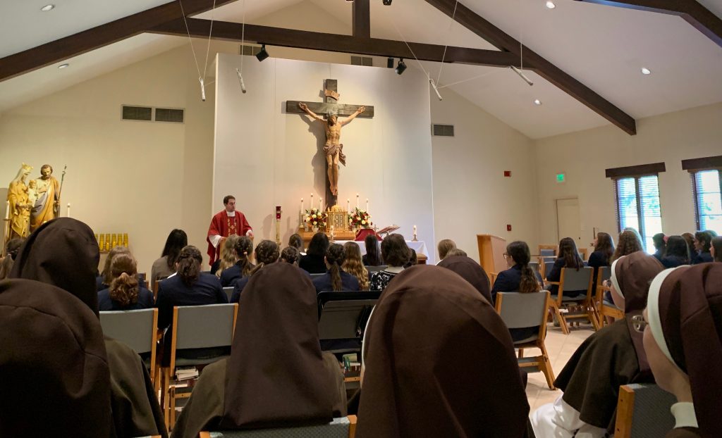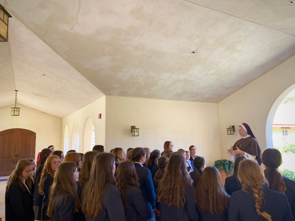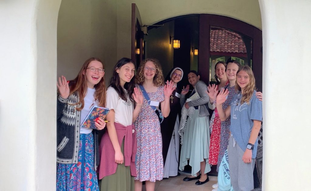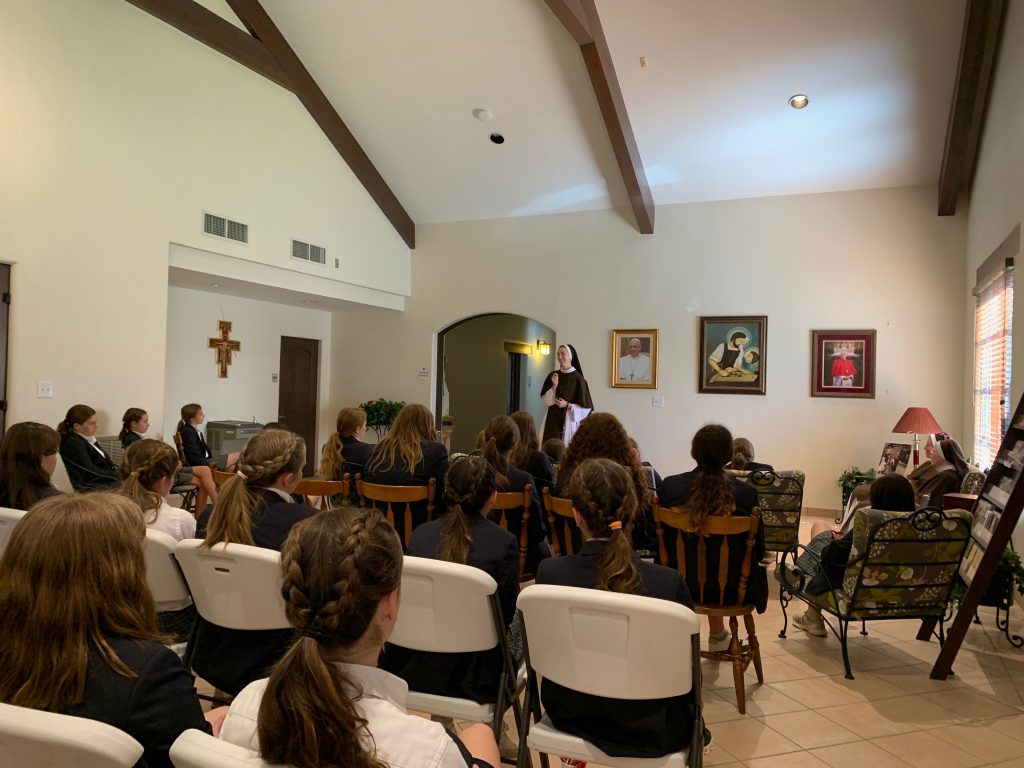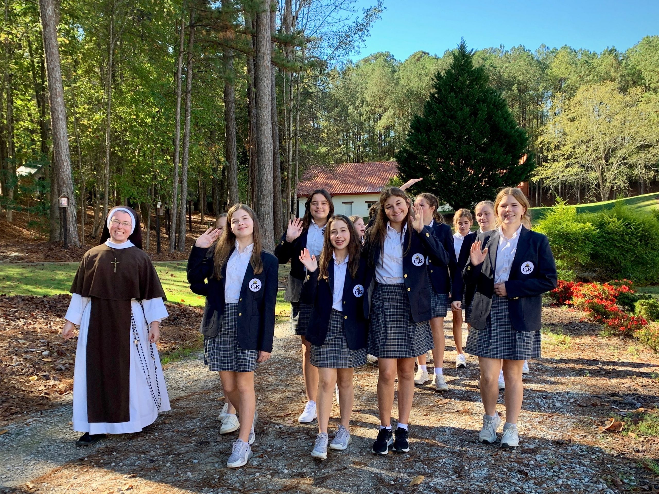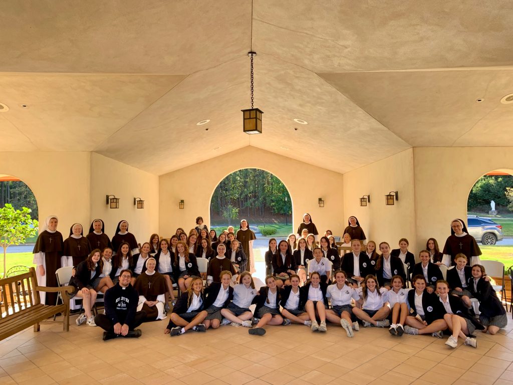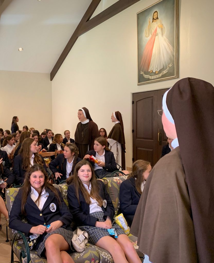 November 19, 2024 A Visit to the Convent Last week, Casa Maria was happily overrun with fifty middle school girls from a parochial school in south Alabama! Their chaplain, a friend of the community, wanted the young ladies to have a day focused on the importance of discerning their vocations, whether that be to marriage, the single life, or religious life. When the group arrived, Sister Mary Faustina explained our apostolate and the religious habit. They had a tour of the retreat center and grounds and were able to visit with the Sisters. They then heard the vocation stories of three Sisters, and were able to ask a lot of questions. The day continued with Mass together, lunch, and a trip to the bookstore, where many began their Christmas shopping. Before they left, Father blessed any rosaries and medals the girls had bought. God bless you girls, and we hope to see you again!