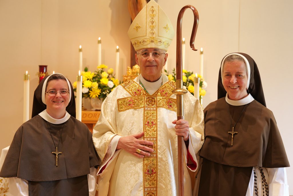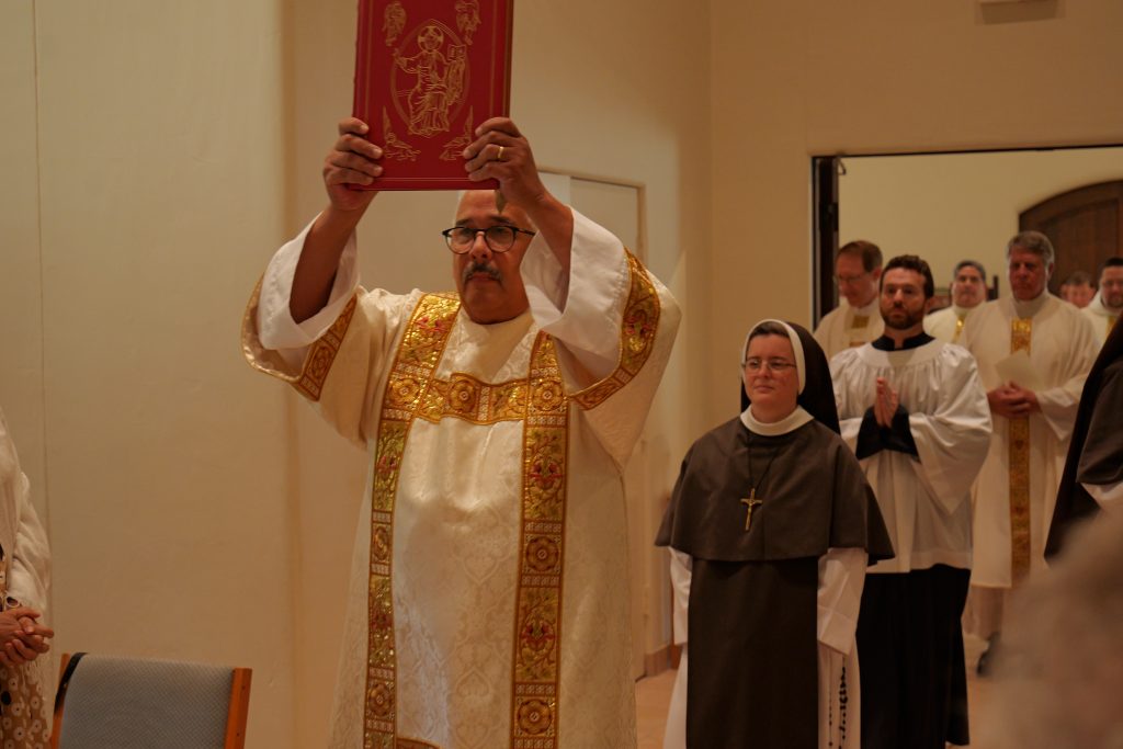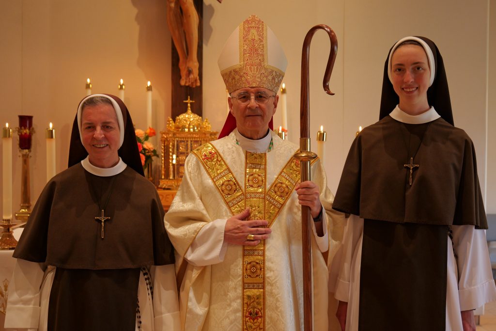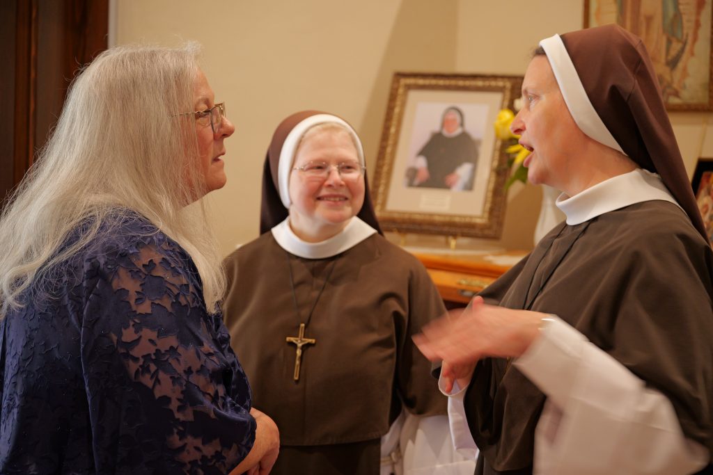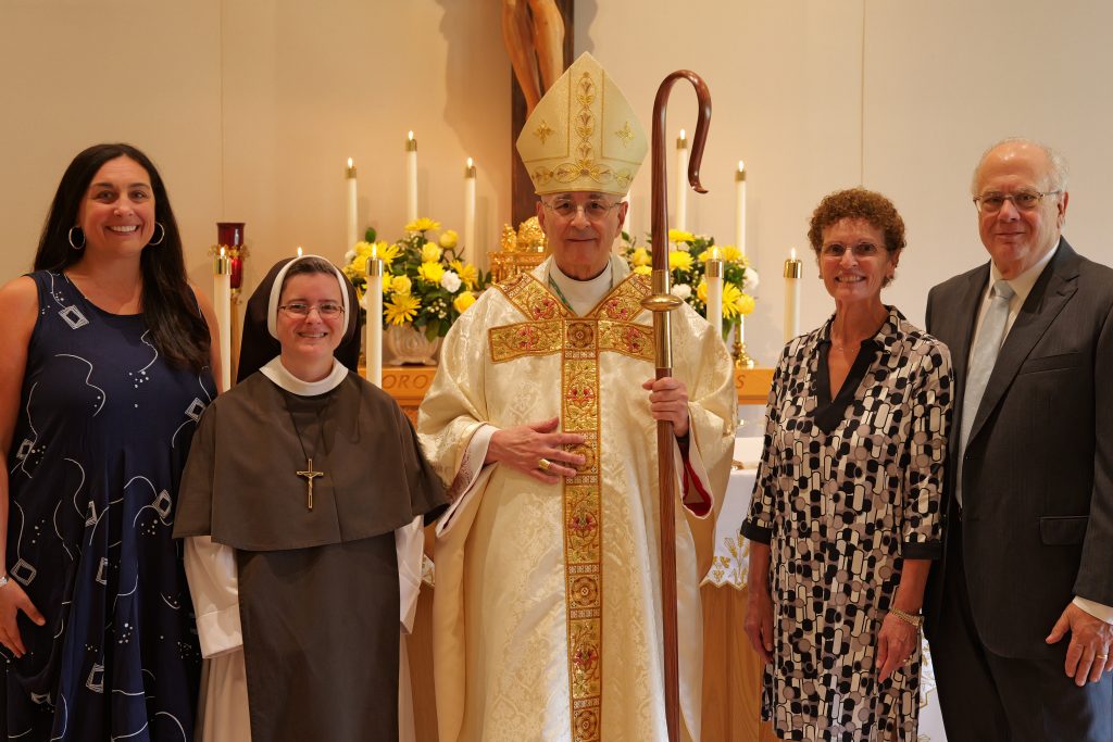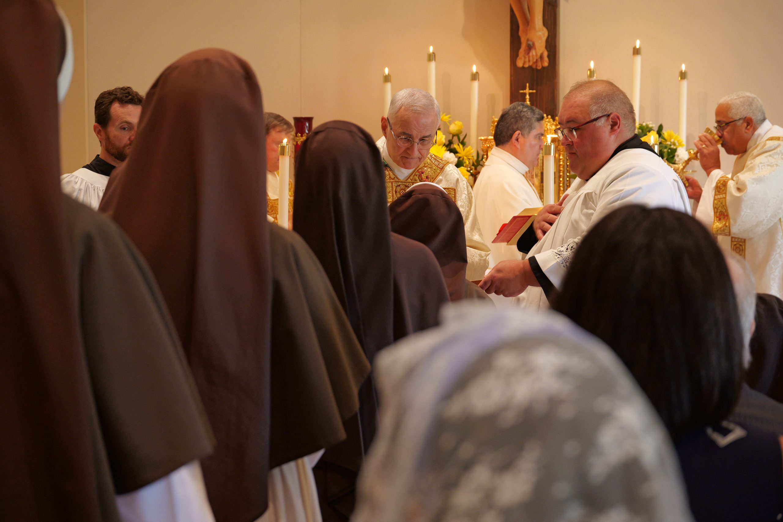 September 11, 2024 Sister Mary Michael’s Final Profession of Vows Last First Saturday, September 7th, anticipating the feast of our Blessed Mother’s Birth, we had the joy of witnessing Sister Mary Michael’s Perpetual Profession! It was a great and joyous celebration, in which we were joined by many family and friends. Sister Mary Michael of the Incarnate Word reflected on her profession in light of Jesus’ presence among us in the Incarnation, “Perpetual vows are amazing, but it is not easy. Jesus never promised easy. He did promise the hundred fold in this life though. What is easy is to miss the fact that the greatest part of the hundred fold is simply that God became Emmanuel, meaning God-with-us. God is always with us. He is with us in the Eucharist, in the Scriptures, wherever two or three are gathered, just to name a few. And in an extraordinarily profound way that goes beyond words, God is always with me as a perpetually professed member of this religious community.” During the Entrance Procession the sisters sing the antiphon, ‘Come, Spouse of Christ, receive the crown the Lord has prepared for you!’During a Profession Mass, the parents of the Sister to be professed traditionally bring the offertory gifts to the altar, as a sign of their giving their daughter to Christ and the ChurchAt a Final Profession, the Bishop says the consecratory prayer over the Sister Four days before final vows, a friend of mine very matter of factly asked me, “Why are you doing this?” As I lay prostrate on the chapel floor that Saturday, on the eve of the Nativity of Our Lady, I realized my full answer to her is, “Because Jesus is worth it, and I wouldn’t want to be anywhere else.” In the nine days leading up to final profession, I prayed for all of your intentions, whether you were here physically or spiritually. And for myself, I prayed that God will continue to increase and I decrease, so that I may one day say, it is no longer I who live, but Christ who lives in me. Before her profession, the Sister prostrates during the Litany of the Saints, beseeching the prayer of the Church in Heaven and on Earth to support her in her vocation. Her scapular is put over her head, representing her death to the world. Deo Gratias! Bishop Raica gave a very inspiring homily, and we include a small portion here: The first reading from the Song of Songs notes the burning ardor of love. It is strong, it is powerful; it cannot be quenched. It does not dissipate easily. It is something which cannot be purchased but discovered as a gift already within. It reveals itself in subtle ways. Yet, it is described as “stern as death”, “relentless”, and a “blazing fire”. How amazing is this gift that, once we stumble upon it, we don’t want it to leave. Rather we become more fascinated, more curious, more attracted, more taken by love because it does not seem to have a beginning or end, but finds its source and summit, its fountain of expression in Jesus, who is love incarnate. So, this first word is “love” – not a tawdry or romanticized or maudlin version of it – but one whose power warms and purifies and is often beyond our intellectual conceptualizations. The second reading from St Paul’s letter from his letter to the Philippians reminds us that this love can only be realized when it is confirmed with faith and conformed to the heart of Christ Himself. Your mind and heart must vibrate in unison with Jesus to make a symphonic, harmonic sound. Often times, our imperfections mar the pristine tone that we were meant to create in the Lord. This short but magnificent letter suggests that we should look after the other as more important than ourselves with compassion and mercy. Only then will the note we play have the right timbre, a sweet quality and authenticity. It brings our love to life. Today, you present yourself, Sr Mary Michael – before God, before Mother Louise Marie and before the sisters of this convent – and all of us – to make your final profession. Be bold. Be strong. Rely on God’s grace and the tender encouragement of our Blessed Mother. Family and friends gathered after Mass to celebrate.