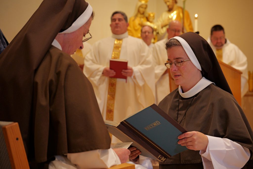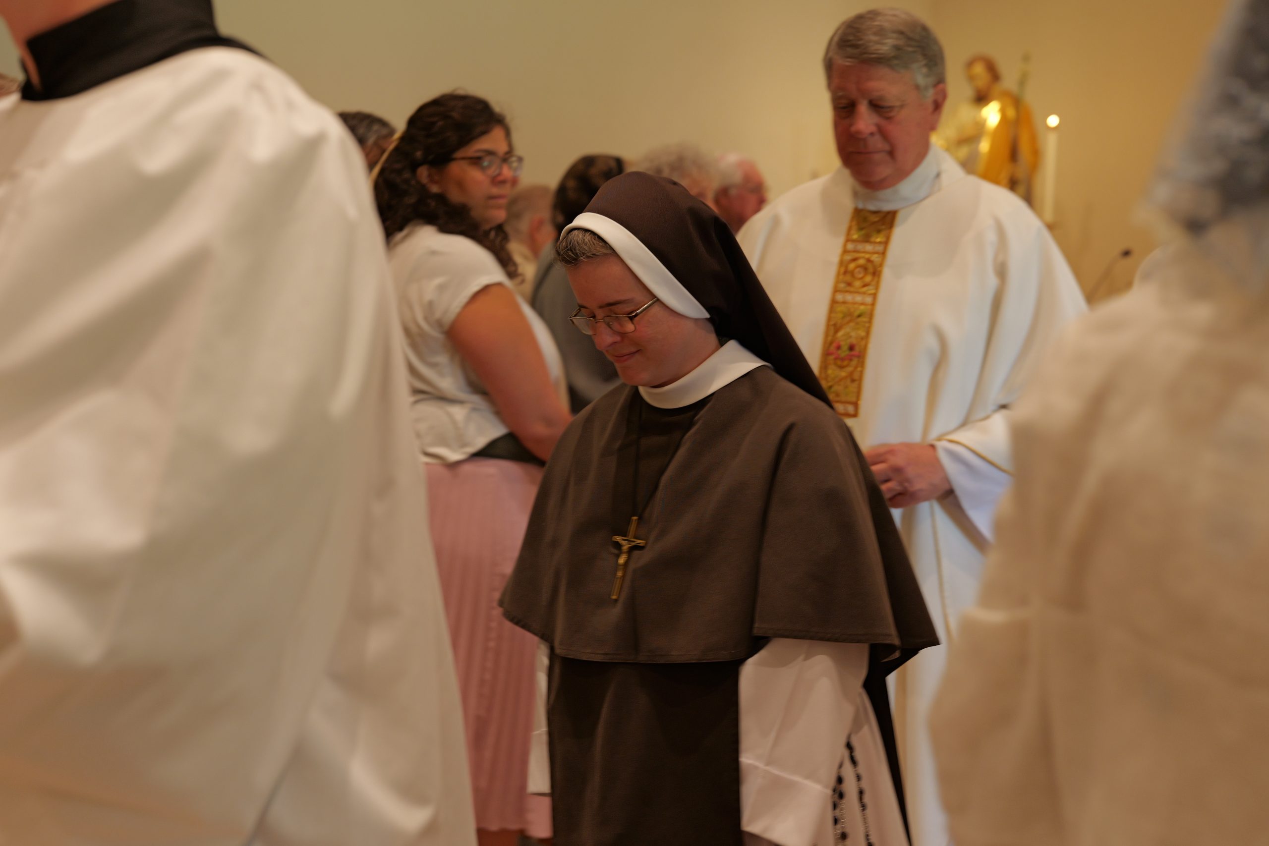 August 22, 2024 Sister Mary Thomas’ First Profession of Vows Please join us in celebrating with great joy and gratitude, Sister Mary Thomas’ First Profession of Religious Vows! Sister was blessed to take this new step in Religious Life on August 15th, the Feast of the Assumption. Many friends and family were able to be with us for the beautiful day. As she herself summarized her vocation story: My name is Sister Mary Thomas Mattingly, and I am from Kentucky. I am number 3 of 5 children. I grew up learning to love the Faith that was taught by my father, to be generous with others as exemplified by my mother, and to enjoy family time with all its craziness. I went to a Catholic school most of my life and worked in the kitchen at a Catholic nursing home that was run by Carmelite sisters all throughout high school. It was there that my vocation to the religious life became clear due to the perpetual adoration they had, daily Mass and confessions, and good priests. Their chaplain convinced me to visit Casa Maria by telling me I could skip school, and when I arrived I felt very much at home. I entered a little over a year later in January 2021. After a few years of formation, I am ready and determined to continue to give my life to Christ and see what His will has in store for me. A Sister’s First Profession is a significant step in her vocational journey, as she commits herself to the vows of Poverty, Chastity, and Obedience, as well as the Rule and Constitutions of the Community, for a limited time while her formation continues. It is with this profession of vows that the veil is changed from white to brown. Mother Mary Gabriel always spoke of our families as our “greatest benefactors”, because Christian families are the “seedbed of vocations” (Pope St John Paul II). We daily pray with gratitude for our families, that the Lord reward their sacrifices; and we welcome them into their now extended family of the Sister Servants!