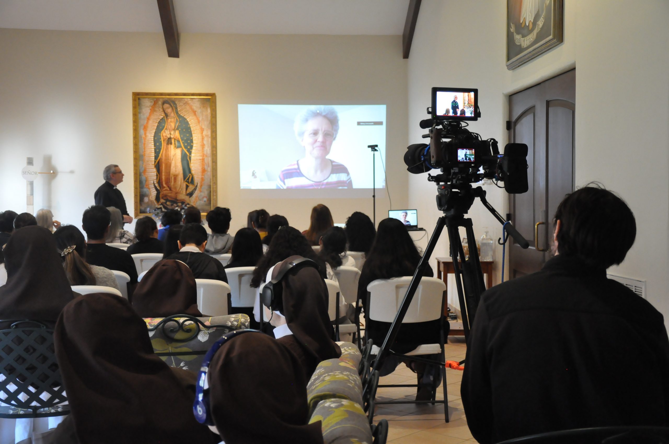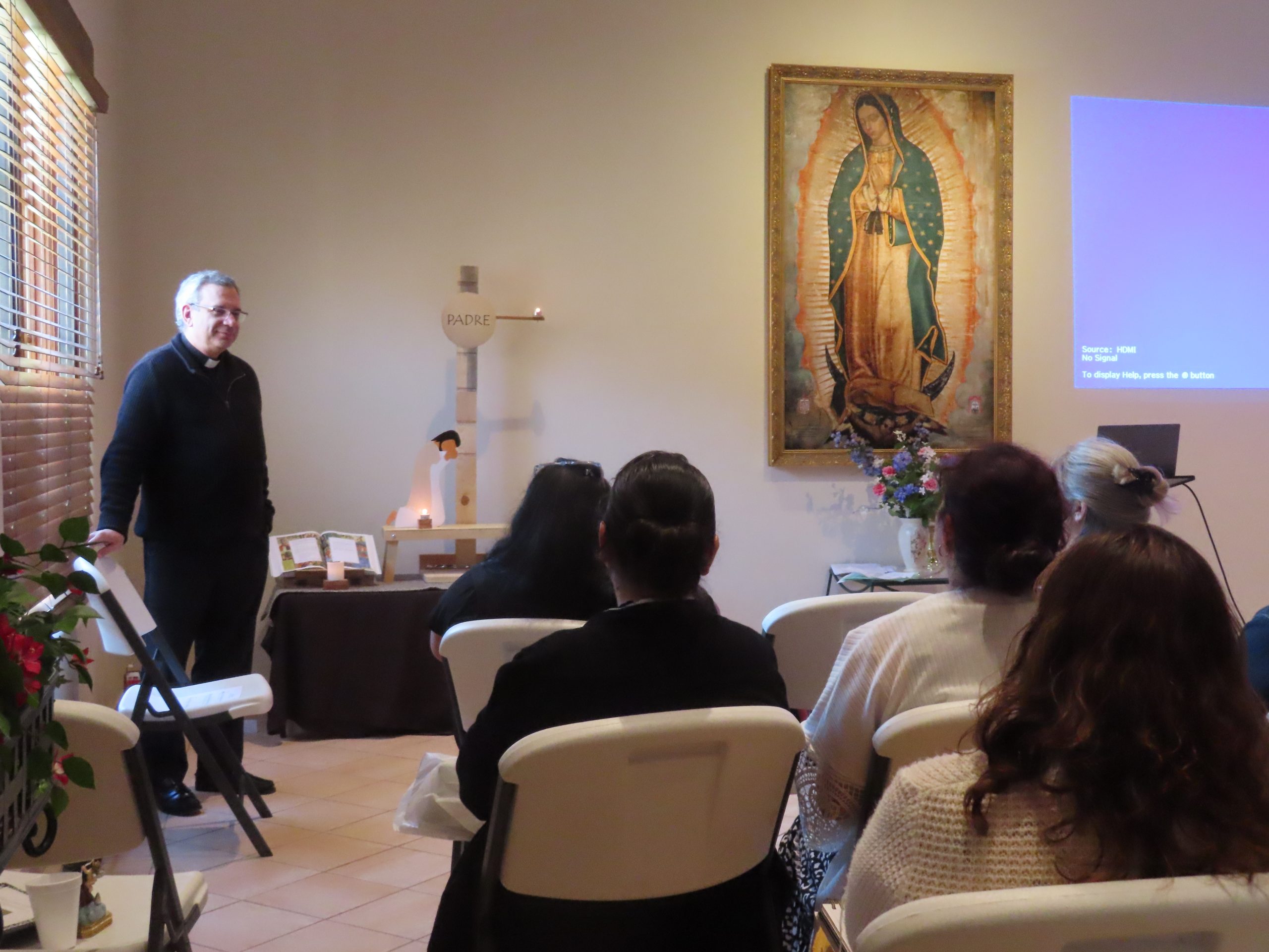 June 16, 2024 Come, Follow Me Formation Retreat From June 10 – 12, we had a wonderful opportunity to offer formation in Spanish for 40 retreatants using the catechetical program Come, Follow Me. The participants came from several parishes throughout our diocese and even from as far as Minnesota. Because most of the teachers are Spanish-speakers, we offered simultaneous translation for English speakers. Fr. José Aurelio Jimenez (pictured below) traveled from San Sebastián, Spain to provide formation, experience, and the catechetical context of this beautiful program. Come, Follow Me developed from the lay community Notre Dame de Vie, which was begun by the French Carmelite Blessed Marie-Eugene of the Child Jesus. Emmanuelle Bonhomme (projected below) is one of the formators of Come, Follow Me and Zoomed in from France to share her experience. It was a moving and fruitful retreat with many graces for us Sister Servants and the participants (some pictured below)!