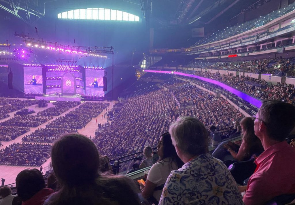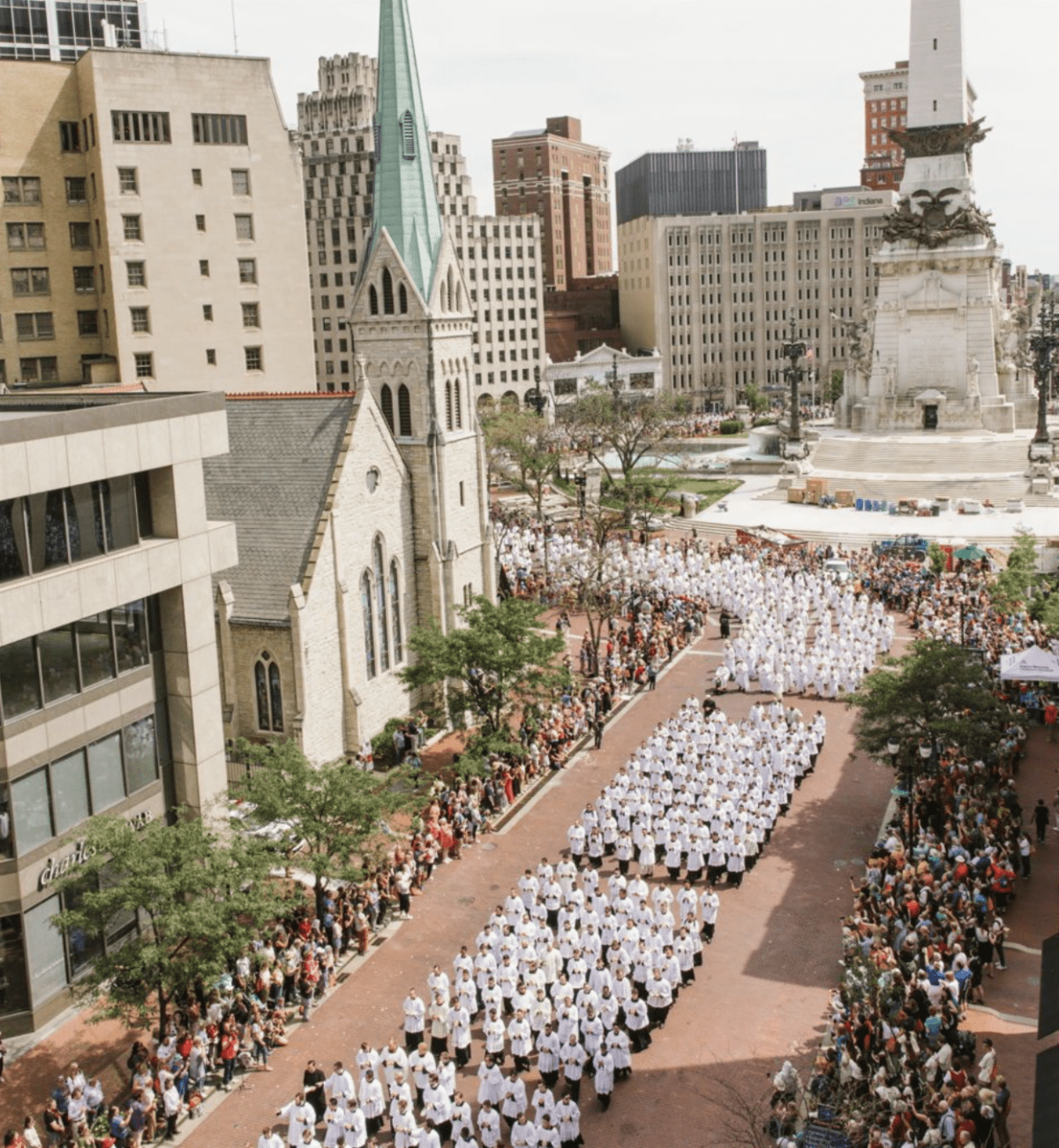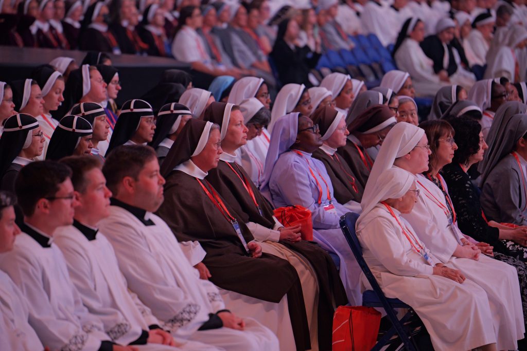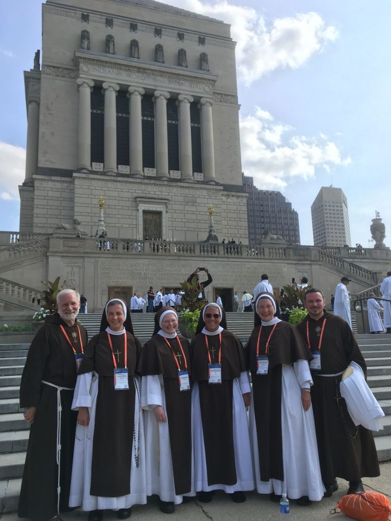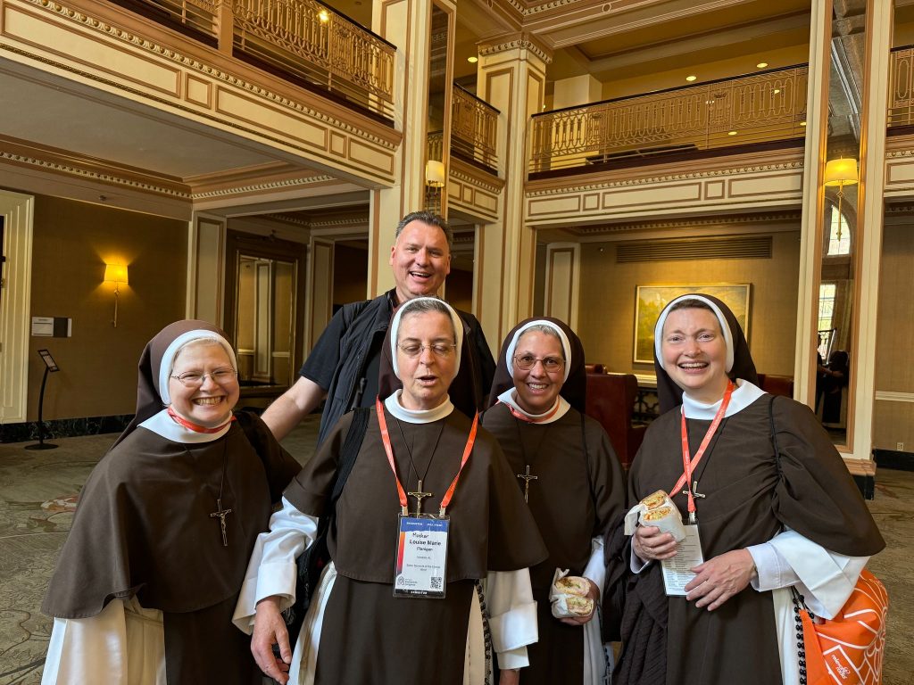 July 26, 2024 Reflections from Several Sisters Attending the Eucharistic Congress The National Eucharistic Congress was a wonderful opportunity to experience the mutual unity and support of the members of the Body of Christ, the Church. Seeing so many religious Sisters, priests, bishops and laity, was deeply affirming to each of us in our particular vocation. I personally met so many old friends – and made new and surprising ones – that what stands out to me is the community of believers gathered around Jesus. I know that I owe my faith to so many who have walked with me in my pilgrimage of faith over the years. And I am excited to “hoe my row” and work in His Vineyard with His coworkers until our glorious entry into His kingdom – Maranatha, Come Lord Jesus, Come! -Mother Louise Marie Mother Louise Marie with Stephanie and Dan BurkeSister Rita Marie with Adrienne, a cousin of Sister Mary AnthonyBishop Henning (Rhode Island) with his pilgrims and Tim, Mother Louise Marie’s brother (also R.I.)Mother Louise Marie and Sister Mary Philomena with Fr. Landry, a longtime retreat master at Casa Maria, and Mary Ann and Stephen JepsenFr. Joseph, MFVA and Fr. Patrick, MFVA with the Sisters after the procession BenedictionBeth Sri and other friends of FOCUS, and Bob, Mother Louise Marie’s (other) brotherFr. Jon Kalisch with the SistersMother Louise Marie and the Sisters with Mary Ann Jepsen (sister of Bishop Emeritus Robert Baker) and longtime friend Jesus said, “…and I when I am lifted up from the earth, I will draw all men to myself.” The Eucharistic Congress in Indianapolis celebrated the presence of Sacrifice of Christ on the altar at Mass, with opportunities to receive the fruit of this sacrifice: Communion with Our Lord, the source of holiness and food for the journey to heaven. There was time for acts of thanksgiving by adoring His Real Presence and receiving his blessing. Then the final commendation was to give back what we had been given, to our local Churches, our homes, and within our hearts. -Sister Rita Marie Pictured above: Evening Adoration; Public Procession with Benediction at the Civic Monument; Perpetual Adoration at the Church of St. John that was filled each day with prayer; the stadium held 60,000 souls worshipping together. Property of The Catholic ThingProperty of National Catholic RegisterProperty of National Catholic RegisterProperty of National Catholic Register My initial reaction coming home from the Congress is to say, “Wow! What an amazingly wonderful experience!” When I was growing up, the unwritten idea was that it is okay to be a strong Catholic, but just don’t share it with anyone. At World Youth Day in 1993, St. John Paul II said, “This is no time to be ashamed of the Gospel. It is the time to preach it from the rooftops…” Many listened. With this amazing Christ-centered Eucharistic Congress, Cardinal Luis Tagle said we should have a conversion to the Eucharist and then Go, Share the Faith! -Sister Marie Francesca I was so happy to be able to attend the Eucharist Congress, and to witness the faith and unity of priests, Sisters, and lay people. I was busy at our table, answering questions and sharing materials about our community, as well as attending smaller get-togethers. This experience of the Congress really uplifted me and strengthened my faith! -Sister Mary Philomena