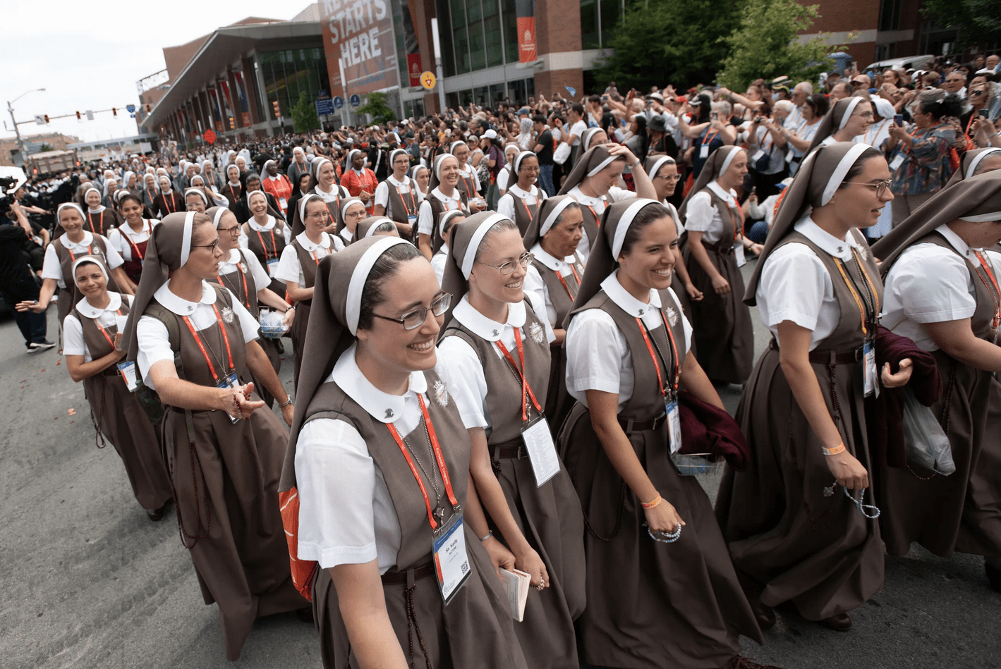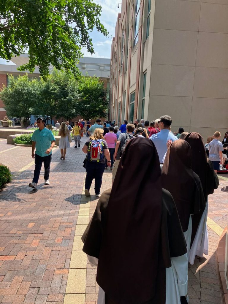July 11, 2024 Eucharistic Zeal! Image courtesy of Mary Dillard, https://onevoicebhm.org/privileged-moment-diocese It has been beautiful to see the local and national efforts to contribute to the Eucharistic Revival called for by our Bishops, and so needed in the Church! What trial can we not withstand, when our Lord is present among us? We had the joy of participating in a few national pilgrimage events as the Juan Diego pilgrimage passed through Birmingham. A few representative Sisters will also be at the Congress next week – we look forward to seeing many of you there! A few representative Sisters will also be at the Congress next week – we look forward to seeing many of you there!