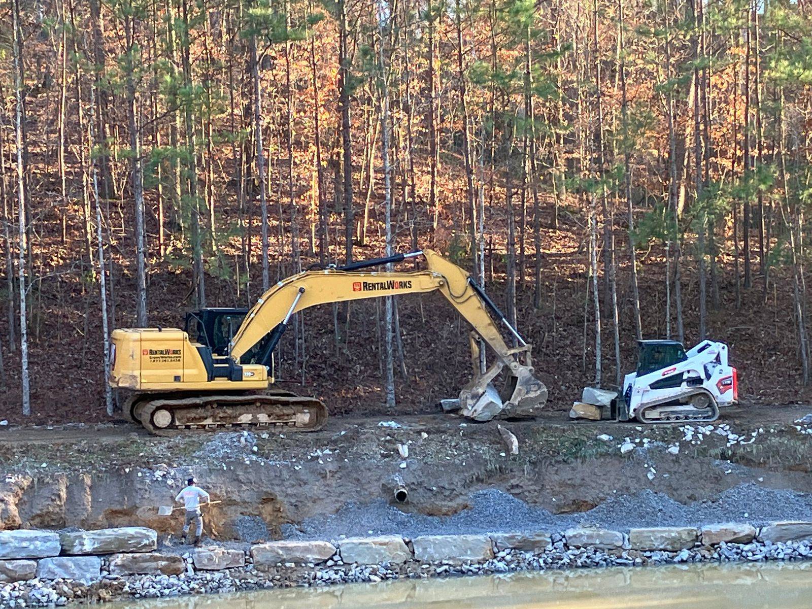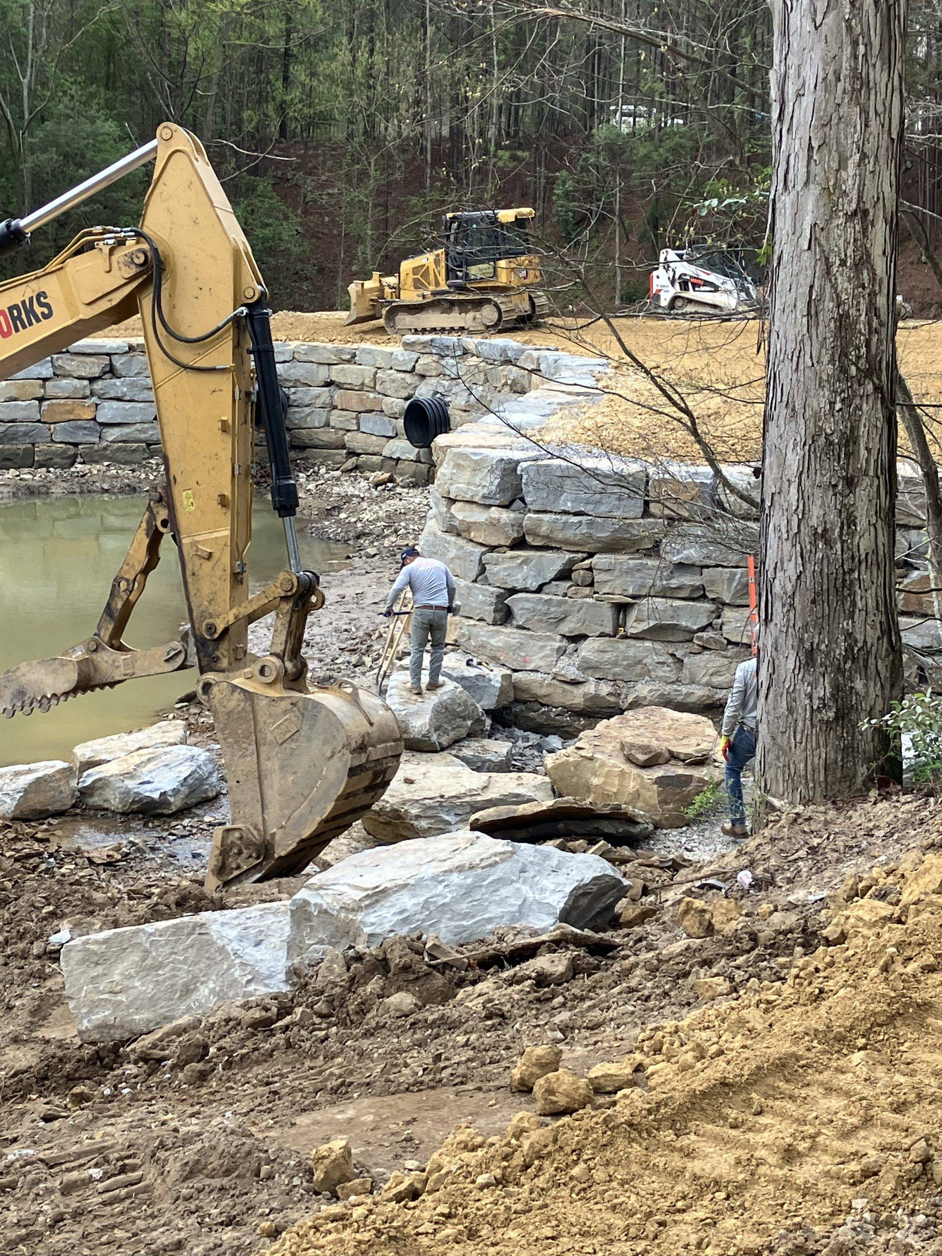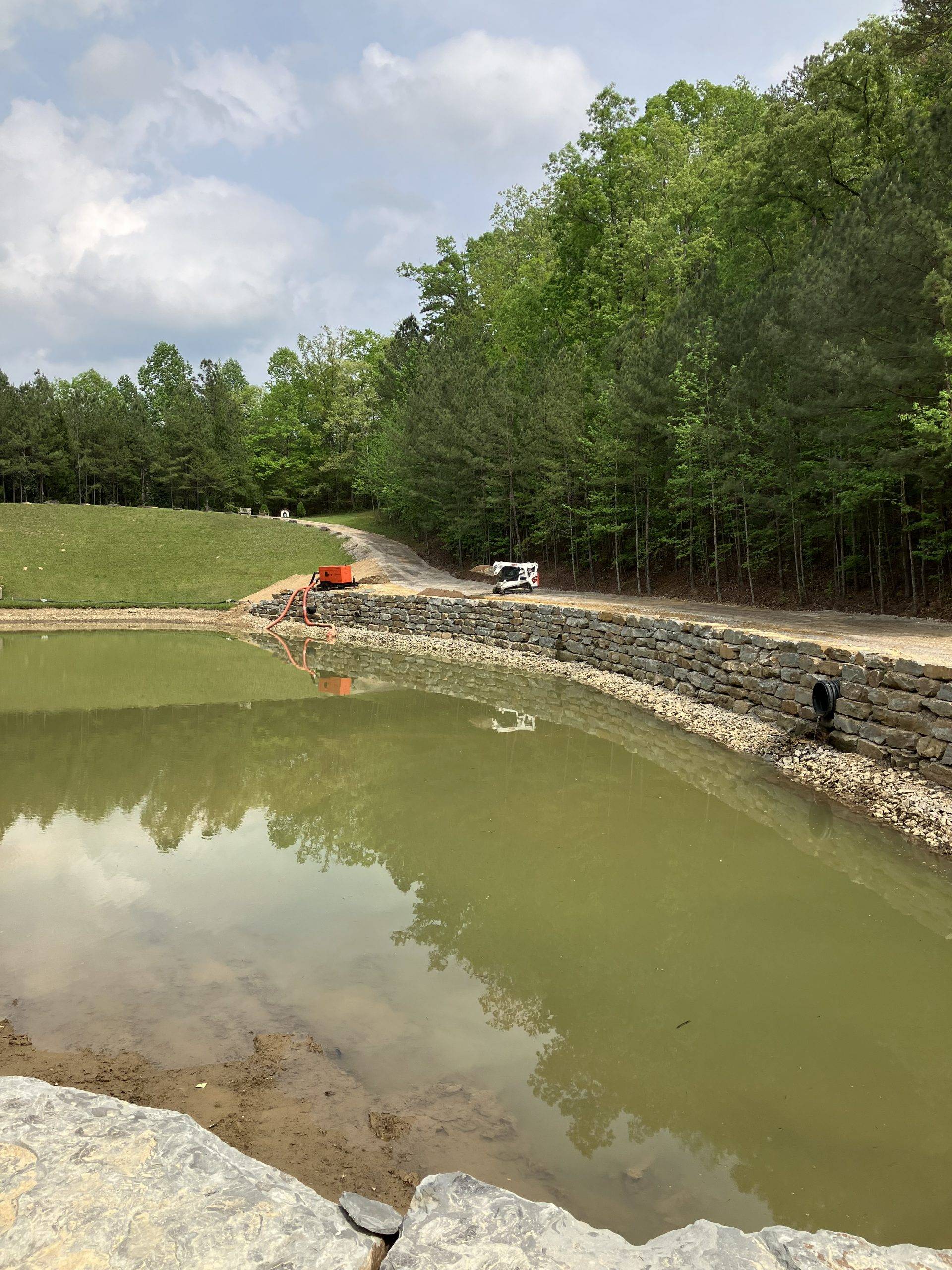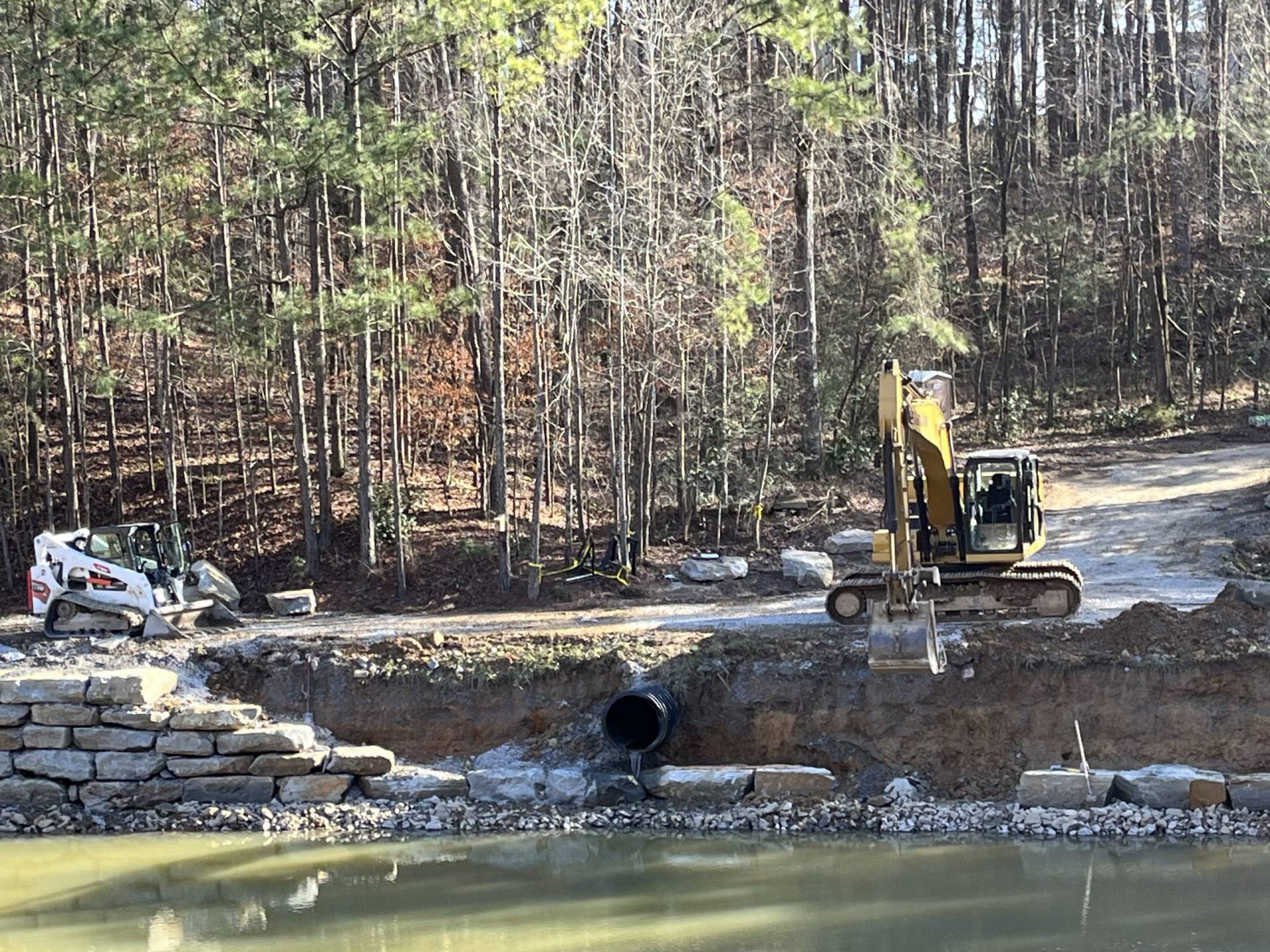 May 29, 2024 Approaching the Finishing Line You have accompanied us this Spring in our major work of drainage and erosion control at our pond. We are approaching the finish line, with only some irrigation, electrical, and fencing work remaining – as well as the installation of a gazebo near the pond. We took advantage of this moment to also beautify the entire pond area. Mother Mary Gabriel would frequently tell us, “God is a God of order.” The craftsmanship of the men who helped us with this work reflects the beauty and order of God. Work at the Pond: January – April 2024 To reiterate, over the years we have struggled with erosion caused by the quantity and speed of storm water entering the pond. Erosion caused by periodic flooding. As we built the erosion wall with massive boulders, we took the opportunity to dredge a large quantity of silt, install new drainage pipes, and stabilize the road. We’d like to share with you some before and after photos, and then show you how well this solution handled a recent Alabama storm. The Scope of This Project! Slide 1Slide 2Slide 3Slide 4Slide 5Slide 6 Before and After Photos Recently, we’ve had some monsoon-level rains. We want to share the videos of how well the new drainage functioned after that storm. Returning LevelsOne hour after the storm, the pond levels are returning to normal! Water on our propertyWater is better directed and no longer erodes the road. New drainageNew drainage directs water from our own property into the pond. Finishing Touches Please join us in praying for the remaining details of irrigation, fencing, electrical, and future gazebo (rendering inserted below), and support us as you are able! The future gazebo began through the suggestion and an initial donation from one of our families. We are thrilled to be at the final stages of providing a place that reflects the beauty and order of God for retreatants and the Sisters.