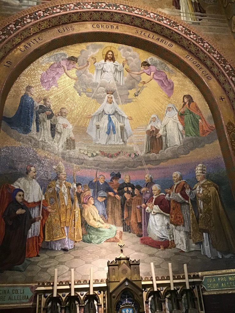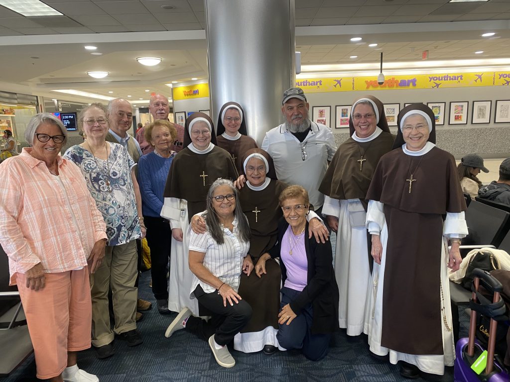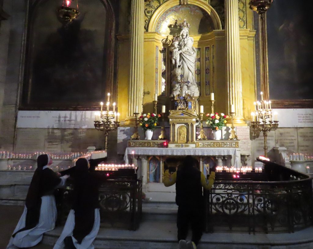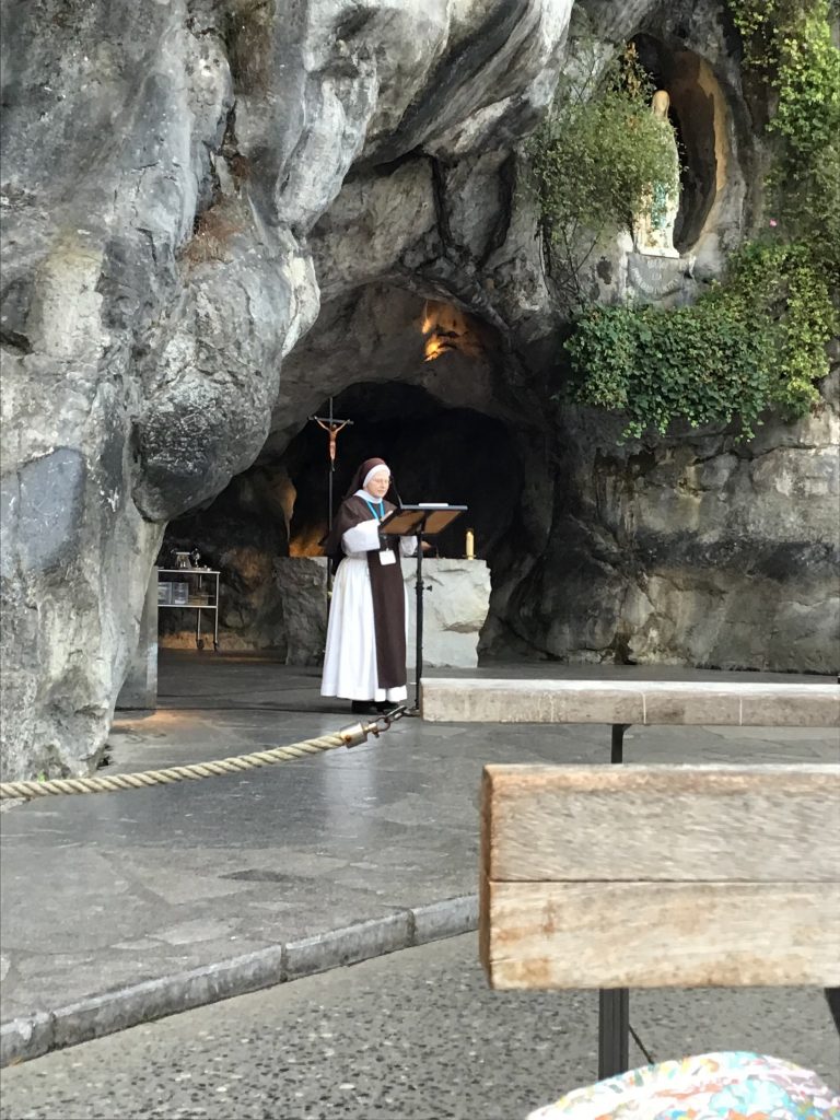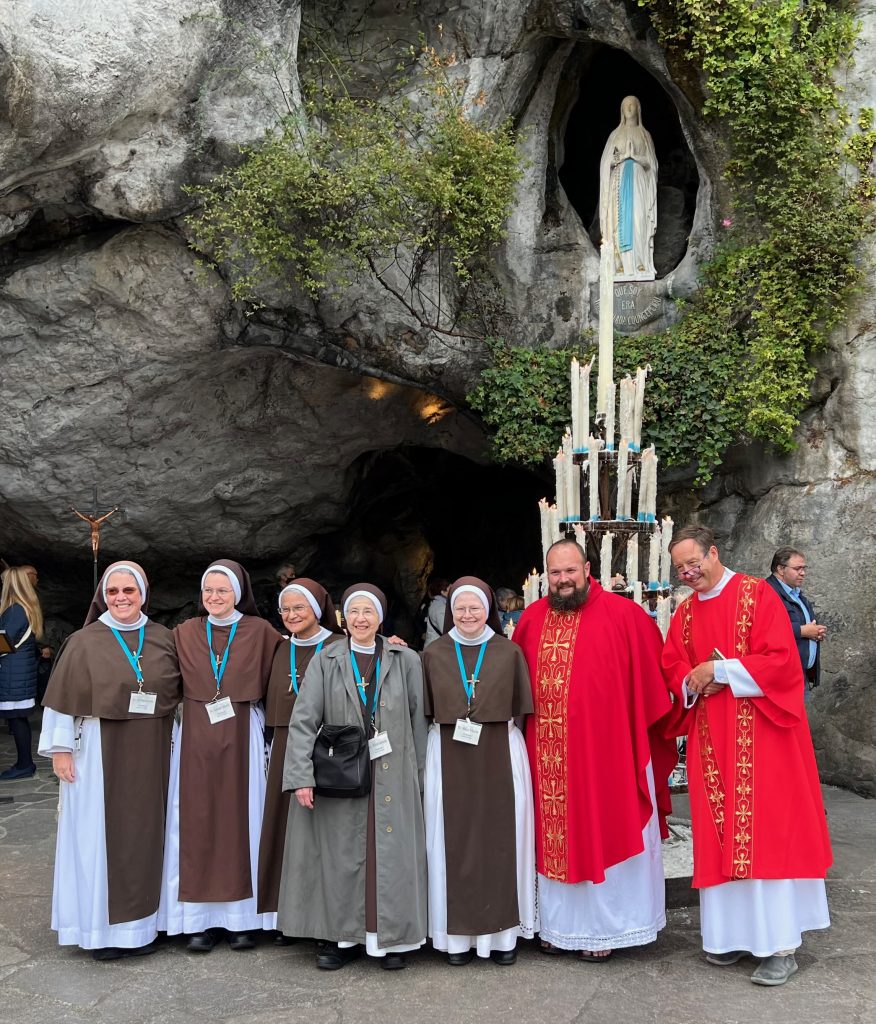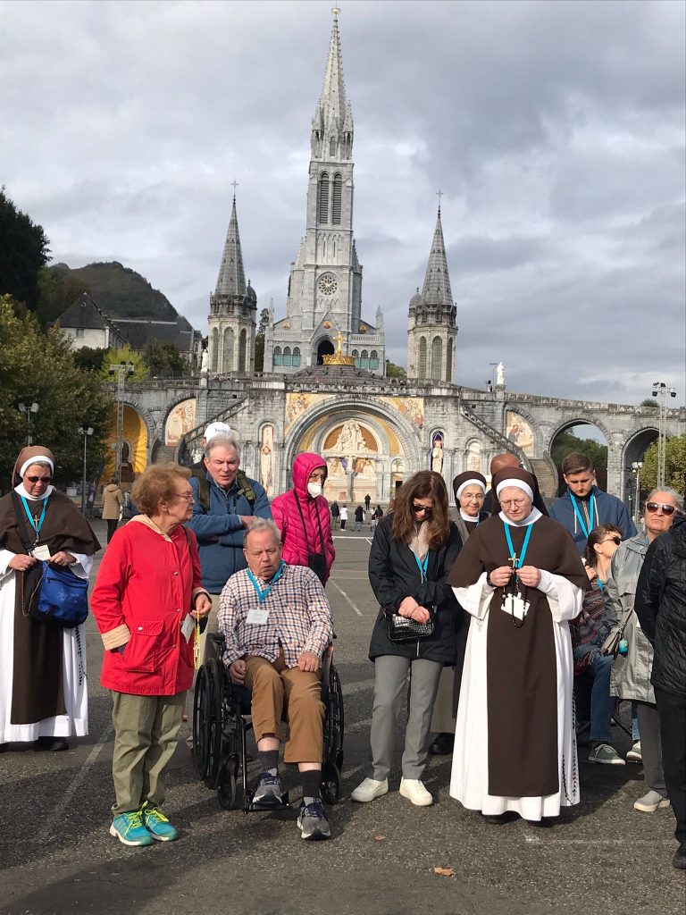 October 31, 2022 ‘Why Go On Pilgrimage?’ by Sister Joseph Marie, SsEW Pilgrim – a foreigner At the end of September/beginning of October, I and four of my religious sisters were given the opportunity to go on a pilgrimage to Lourdes, France. Never having been on a “pilgrimage” to anywhere, much less overseas, I had no idea what to expect. I looked up the word “pilgrim” in the dictionary; it comes from the Latin “peregrinus”: “foreigner, stranger.” Pilgrimage is derived from this same word and has come to mean “a stranger on a journey to a sacred place.” This set me to thinking on what I was about to do, where I was going. The family and friends who travelled togetherPraying together outside the BasilicaOur dear friend, Frankie, organized all the details of the trip and served as tour-guideThe relic of St. Bernadette kept at LourdesAfter Mass, the first day In 1858 Our Lady appeared to a fourteen-year-old peasant girl, Bernadette Soubirous, standing in a niche in a cavern on the banks of the River Gave in southern France. She appeared to Bernadette a total of eighteen times, asking her to pray the rosary for poor sinners, that a chapel should be built there in her (Our Lady’s) honor and that processions should come there. She revealed herself to Bernadette as “I am the Immaculate Conception,” reiterating the dogma recently proclaimed by Pope Bl. Pius IX in 1854. Arriving in France after an all-night flight, I understood what it meant to be a “pilgrim”. A person in a foreign place, without understanding the language, trying to keep up with our group while shuffling luggage up and down escalators, waiting in line to go through customs and praying earnestly I didn’t “beep” while walking through the metal detectors, I realized how important it is to fulfill the Old Testament mandate “be kind to the foreigner in your midst!” My longing to arrive in Lourdes where Our Lady was surely waiting for me became ever more earnest. The Basilica and Grotto beside the River GaveThe Basilica is decorated with hearts containing petitions and notes of thanks from pilgrims Photo indicating where Our Lady stood Sister Rita Marie reading at the Mass at the Grotto on the first day of the pilgrimage Life is a pilgrimage As the sisters and I prayed together at Our Lady’s Grotto and washed in the miraculous spring, the line from Psalm 84 came to me: “As they go through the Bitter Valley, they make it a place of springs…” While we attended the Devotions at the Basilica and took part in the Rosary processions with thousands of other pilgrims from all over the world, I realized in a tangible way, the gift of unity of the Body of Christ. Together we prayed the Rosary for the Church suffering on earth and in Purgatory. As we took extra care of the sick among the pilgrims, we sensed the encouragement of the Church Triumphant seen in the banners of the Saints as we processed by them, following Our Queen with our lighted candles. All of us praying to her together, offering our petitions and bringing the intentions of all those we love, brought home to me the reality of the Communion of Saints. Entering the Basilica of St. Pius X A procession of the ‘malade’, the sick coming to visit Our LadyThe nightly candlelight processionOur Lady among the pilgrims on procession Some may wonder, as I did before I left, “why travel to these places when I can just ‘google it’ and see better pictures anyway?” “Why go through all the expense and inconvenience of traveling to a foreign land when I can pray here at home, in our own convent chapel?” I found the answer when I arrived in Lourdes, but also as I pondered on my experiences when I came back home. Some of the group, hiking in the Pyrenees The second reading in the Office of Readings for Thursday of the 38th week in Ordinary Time is from “A Treatise on John” by Saint Augustine. He writes of our being drawn to God by our longing for Him -that our will is drawn to God by our desire to love. Hearing Augustine’s examples of “desiring”, this sentence caught my attention: “Show me one who is full of longing, one who is hungry, one who is a pilgrim and suffering from thirst in the desert of this world, eager for the fountain in the homeland of eternity and he knows what I mean.” When I heard the word “pilgrim” it dawned on me: THIS is why we travel to the sacred places. Because they remind us that our whole life is a pilgrimage to the Holy City, the New Jerusalem where Jesus and Mary await us; where the saints lead us into the joy of the Heavenly Father who waits to welcome us after the arduous journey of life. May we be welcomed by that same presence of Our Lady that I was welcomed with in the Grotto of Lourdes. Our Lady’s Coronation, as depicted in the Rosary Basilica, with the Church Triumphant After Lourdes, the Sisters were also able to visit other holy sites in France. A few photos of these shrines are below. At Nevers, where St. Bernadette lived as a Religious SisterOur Lady of the Waters: the statue at Nevers that St. Bernadette said was most like Our LadySt. Bernadette’s incorrupt body, at NeversOne of the badges St. Bernadette would sewOutside Notre Dame CathedralA depiction of St. Catherine Laboure with Our LadyThe chapel at Rue du Bac, where St. Catherine saw Our LadySt. Catherine’s incorrupt bodyAt Our Lady of Victories
