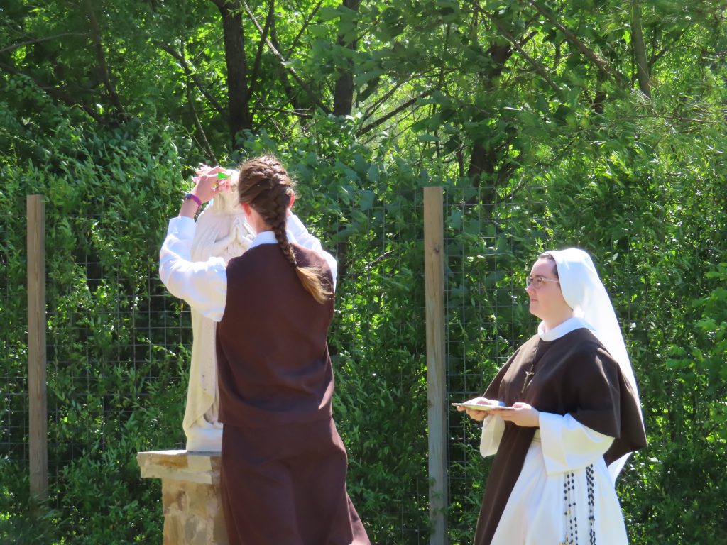 I asked Mother Louise Marie if I could share my memories with you in the hopes that you might consider making this devotion a tradition in your own family. Even if you live alone, making a special place to honor Mary in your home and your heart during the month of May will surely bear fruit. Our Lady will certainly be pleased, and you might find that it’s a little easier to relate to her as Mother when you come to her “bringing flowers of the rarest” or at least with the simplicity of a child.