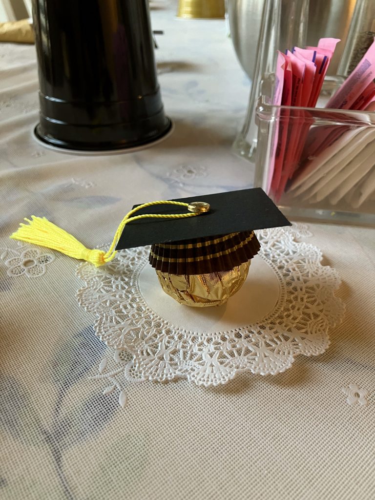 The Sisters who remained home during the trip welcomed the travelers home – providing the graduates with replacements for the cap and tassel that they didn’t wear for the commencement ceremony!