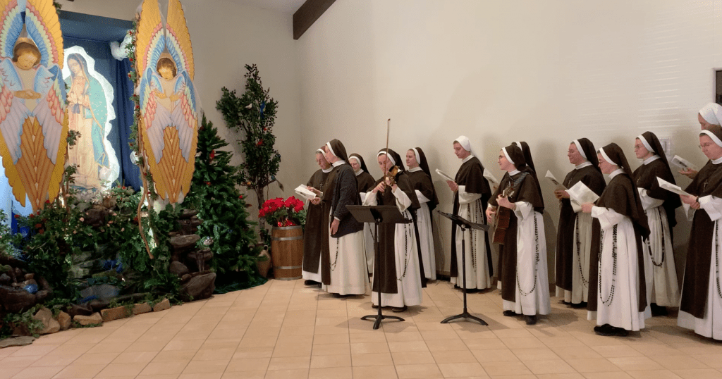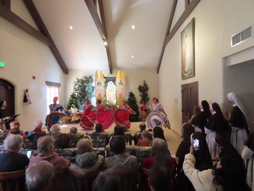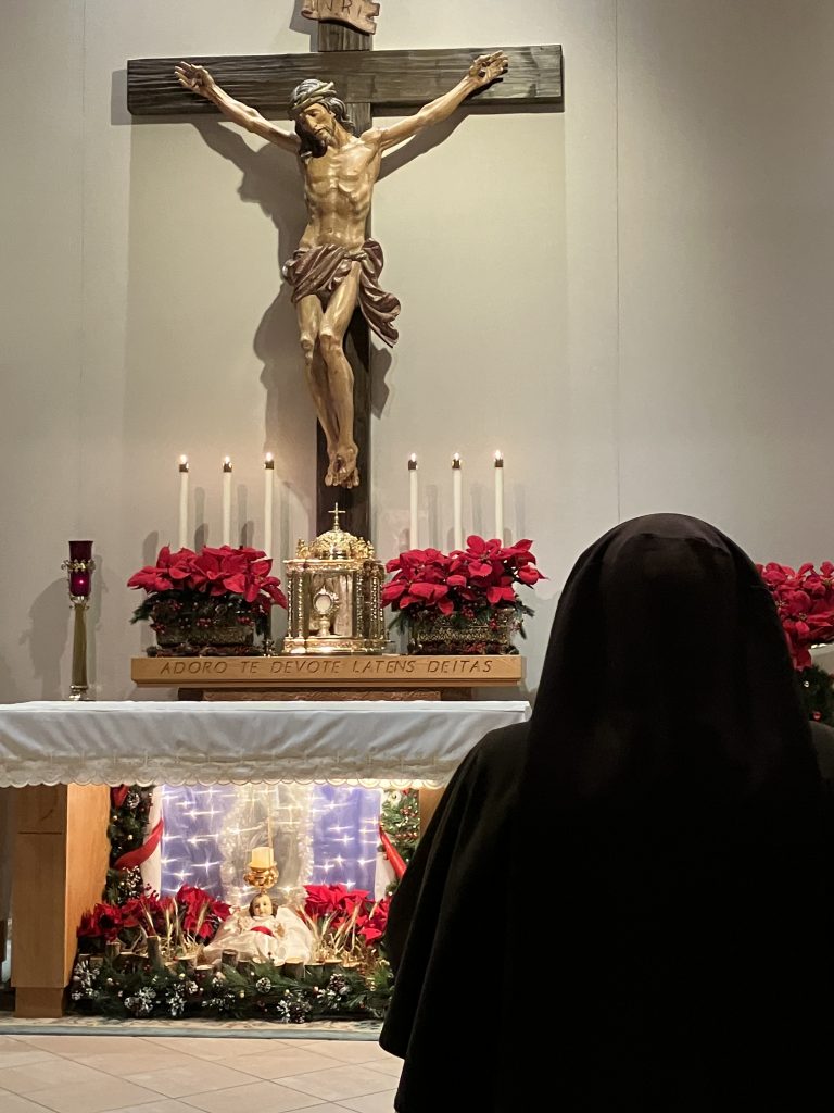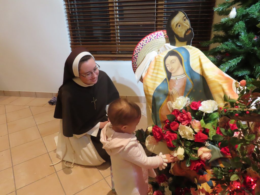 December 28, 2023 Merry Christmas! Christmas blessings to all our loved ones from the Sister Servants at Casa Maria! The Octave of Christmas is a joyous time of liturgy, visits, delicious treats, and the celebration and prayerful contemplation of the wonder of the Incarnation – God become man to save us from our sins and bring us with Him to Heaven! The beginning of our “posadas” pilgrimage… accompanying Joseph and Mary as they search for shelter wherein the Christ may be born.Shelter (and cookies) have been found at the end of the “posadas” – with Our Lady!December 12th celebrating Our Lady of Guadalupe with singing…… and dancing.Christmas stockings require a hearth!Voila!Everyone contributes to Christmas preparationsThe Liturgy prolongs the Christmas Day for the entire octave!Sister Rita Marie prepared a special Christmas tea for us!Creche made by the Benedictine nun Soeur Mercedes in FranceThe Crib, the Cross and the Eucharist – celebrating the humility of our God in Jesus’ birth. May you find your peace and joy with the Holy Family during these most special days. You are in our joyful prayers!
