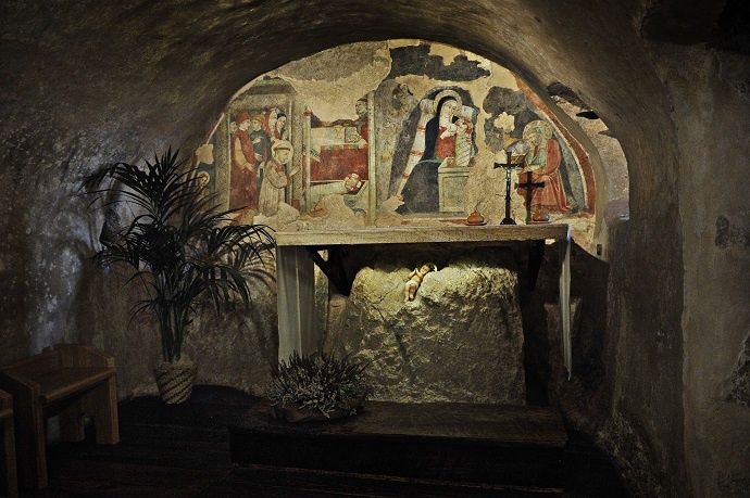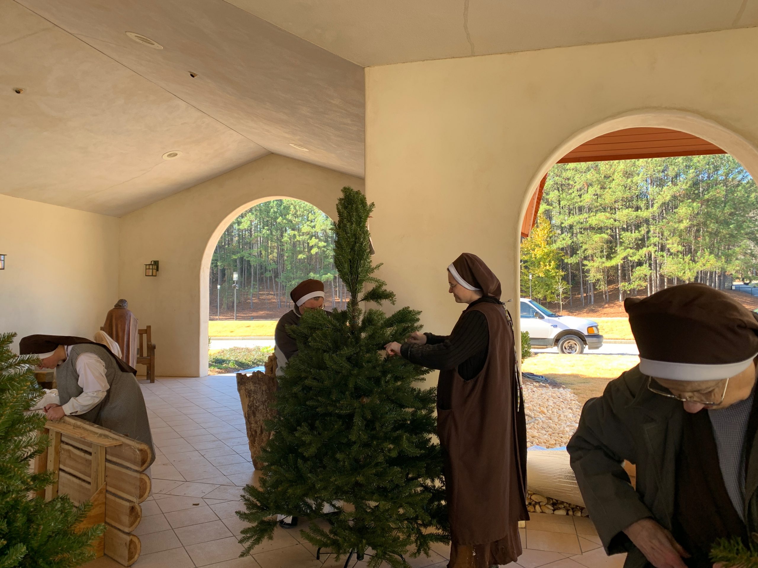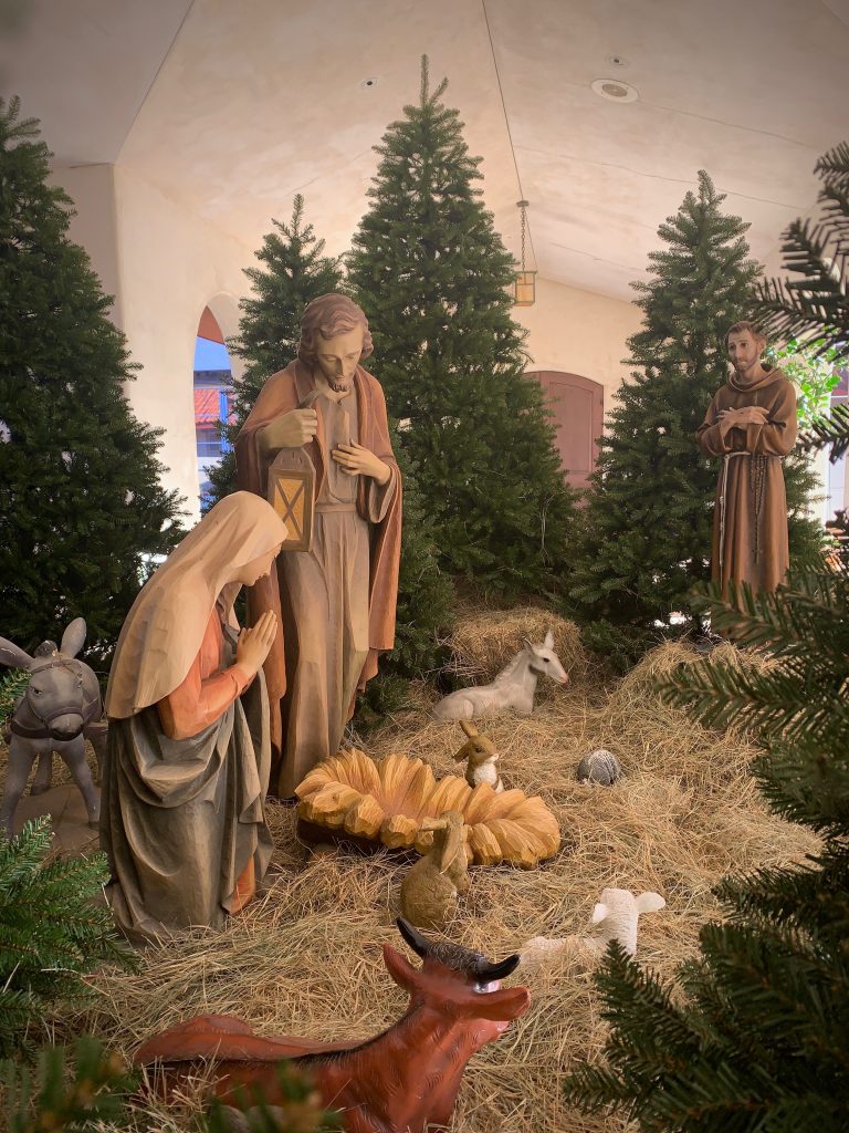 December 13, 2023 Our Own Little Greccio The Monastery of San di Greccio, where St. Francis was staying at the time of the first nativity scene Have you ever heard the origins of the Nativity Scene? Have they been around for the entire 2,000 years of Christianity? Where exactly did it come from? The Nativity Scene as we know it today has actually been a custom since the thirteenth century. In fact, this year is the 800th anniversary of the very first one. It was St. Francis of Assisi who set up the first Creche in Greccio, Italy on Christmas Eve in 1223. He was passing through the area after going to Rome for the approval of his Third Rule. Christmas was only a couple of weeks away when he had the idea. He asked the pope’s blessing for his idea, and then sought the help of a nobleman to make a suitable space for the Creche. He then had a Baby Jesus made out of wax, and the nobleman’s ox and donkey were put into service, too. The townsfolk were all excited about this and some volunteered for various roles. Everyone came out on the freezing cold Christmas Eve, with their torches making the area quite bright. They had Midnight Mass there, and St. Francis read the Gospel and preached a homily as he was a deacon. It is because of this event that we know for certain that he was a deacon. At the end of his homily, he went toward the Child Jesus in the manger to pick him up and kiss him. At that moment the Nobleman Giovanni Velita actually saw the Child Jesus wake up and look at St. Francis with a smile. Only the two of them saw Baby Jesus appear. An altar is now in place over the stone upon which St. Francis laid the manger A further miracle from Greccio was that many people took straw from the manger home with them, and miracles occurred. There were both people and animals cured by the hay from that scene. In some places, people continue the tradition of taking a piece of straw home with them from a blessed manger scene. From the time of St. Francis’ first Nativity Scene, the custom has gone around the world to set up similar Nativity Scenes. Italy is especially known to be quite extravagant! Now, some say Nativity Scenes were around several centuries before St. Francis, but a quick look at what they were talking about showed the scenes (as a mosaic in Santa Maria in Trastevere Rome) is really an Epiphany Scene. What’s the difference? For centuries, Epiphany was considered a higher feast than Christmas. The Epiphany Scene depicted Mary with the Child Jesus and the Wise Men with their gifts. The Wise Men represent all the other nations besides the people of the Promised Land. Here at Casa Maria, our breezeway nativity scene is put up each year by December 8th. Somehow, it seems traditional that “Tree Day” is always a very cold day as we set up our little forest. In the cold, more critters keep making places for themselves in the hay! This year, you will see a special guest in our nativity scene, in memory of Greccio.