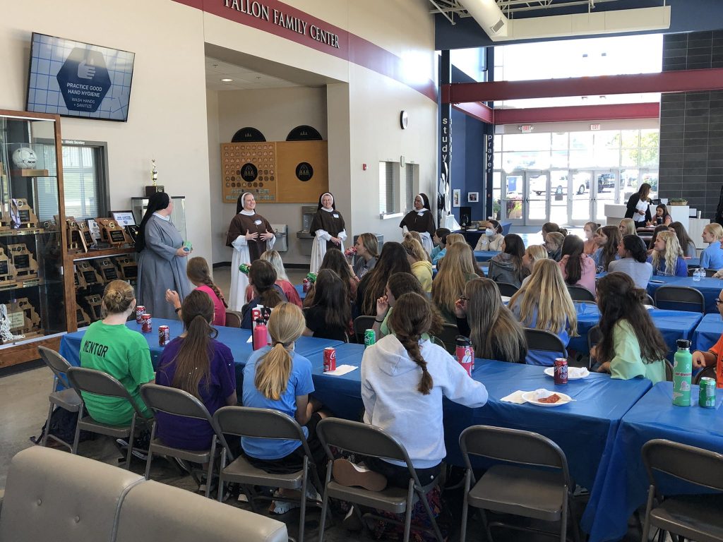 We joined the students for their daily Empower Hour Mass, and then we ate with the girls, shared our stories, and answered questions about our experiences in religious life. 57 girls showed up and were very engaged in listening to us. One student remarked, “I think it’s really amazing because it shows how the St. Dominic legacy of faith is being carried on. It shows just how strong our faith life here can be. It’s just really inspiring for the rest of us that people like Sister have been here before and have come from where we are now. You always think of Sisters as amazing women of God, but it’s easy to forget that they were high schoolers once, too.”