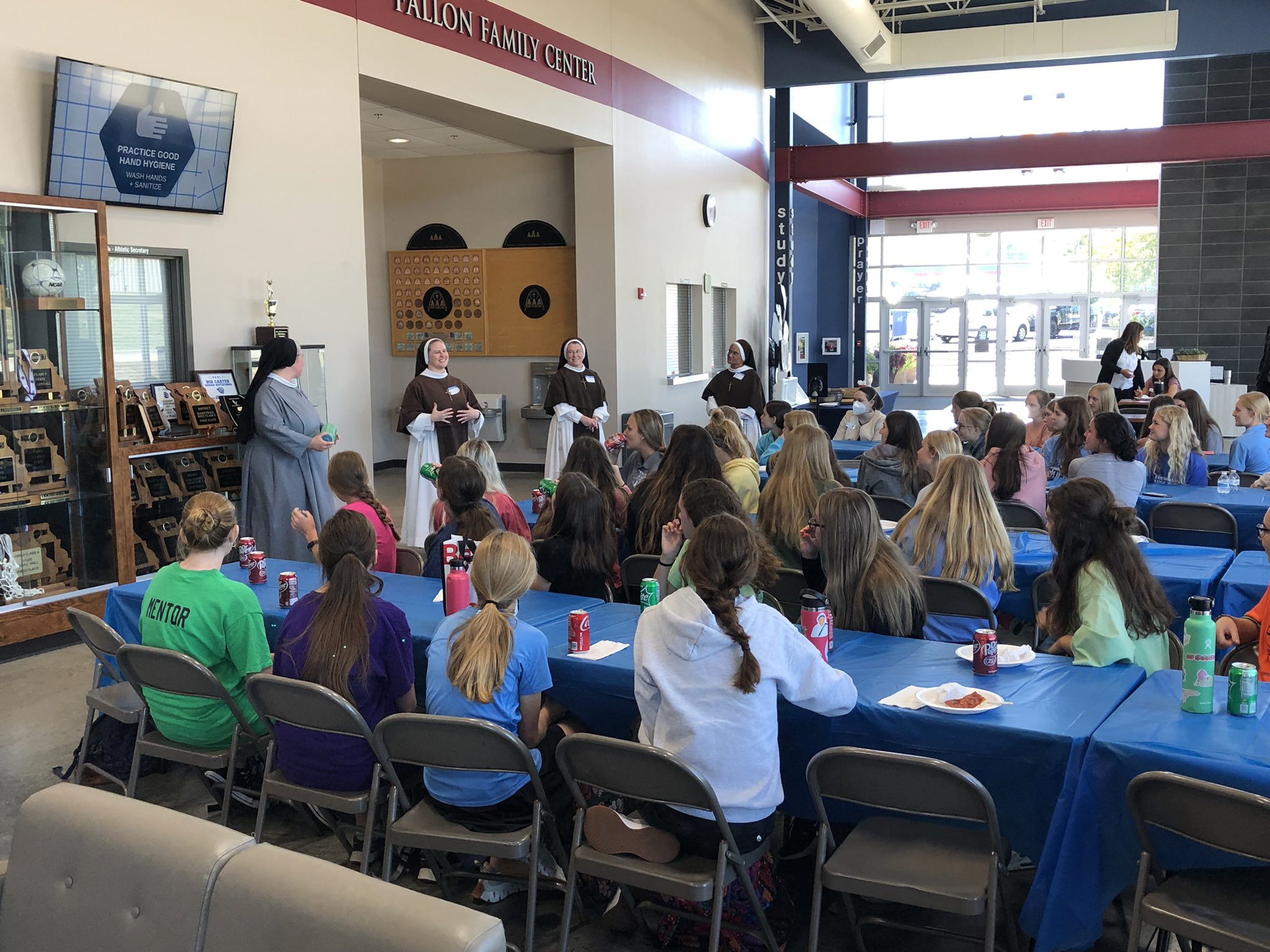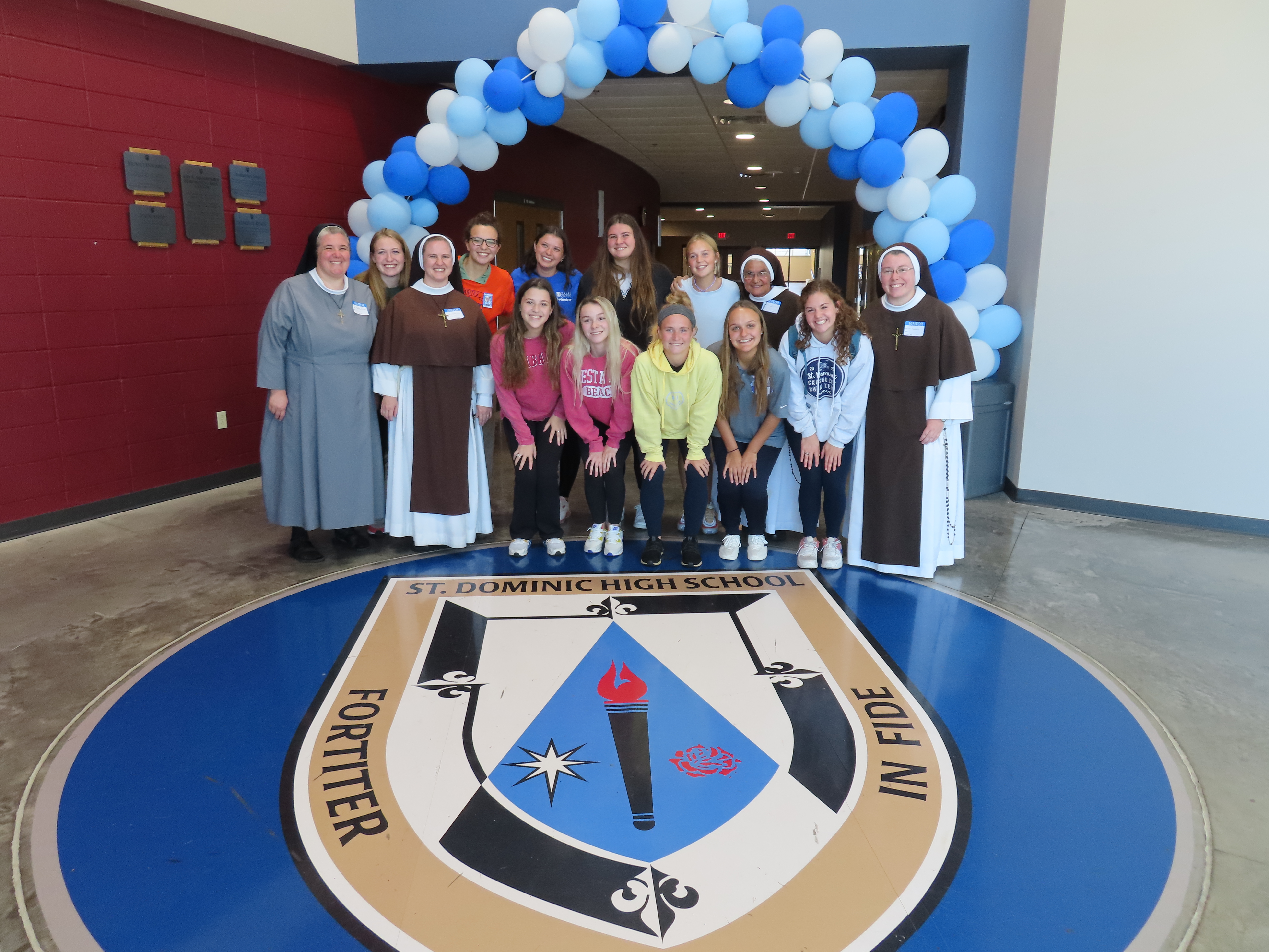 We then left Sacred Heart and headed to St. Dominic High School, my alma mater. It’s hard to explain to an outsider, but in St. Louis, our high schools are very much a part of who we are long after we’ve graduated. Even though I graduated more than 20 years ago, I am proud to say that I am “Forever a Crusader.” St. Dominic has experienced a resurgence of its Catholic identity over the past several years. By becoming dynamically Catholic, about 1/5 of the Archdiocesan seminarians are now St. Dominic alumni and several former students have entered religious life. I reached out to Fr. Patrick Russell, the new Vice President of Mission and Identity, and Andrew Struttmann, the campus minister, and they put together an event for girls interested in hearing our lives as religious.