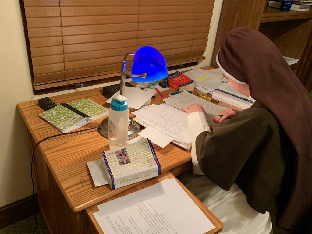 No cause for alarm – we have only been extremely focused on the final stages of our latest expedition into Theological studies! The Fall semester, devoted to Moral and Spiritual Theology, climaxed in what has been unanimously identified as the greatest challenge yet in our community class experience. The last essay and the final exam have seen sisters completing heroic feats of study and memorization, practice essays and drills, quizzing and research! And, reminders to use, I quote, “a ruthless economy of words”.